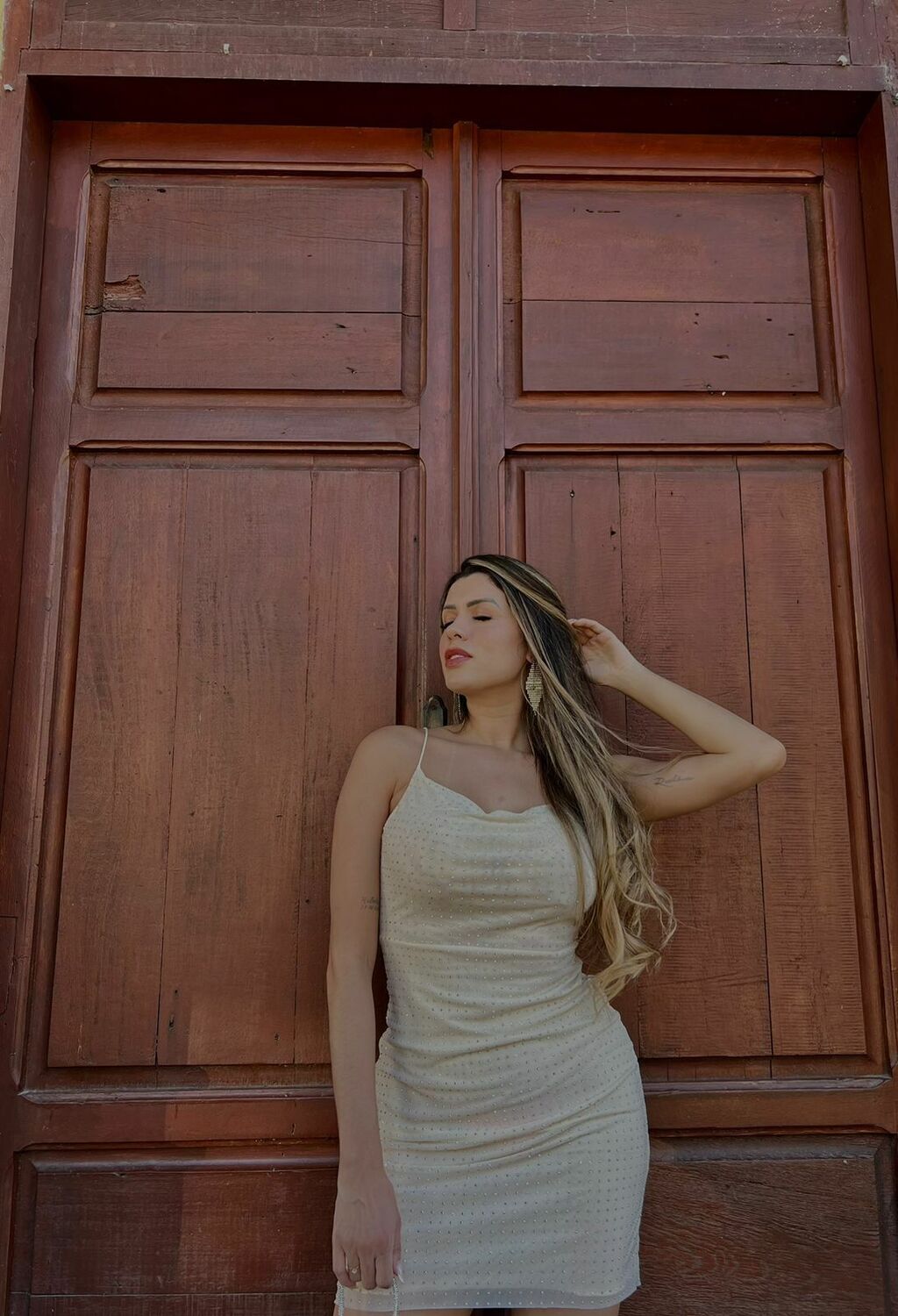 O Vestido Milão é confeccionado em tule com um delicado forro, ele se destaca pelas aplicações de brilho que iluminam toda a sua extensão e possui uma sutil abertura nas costas.